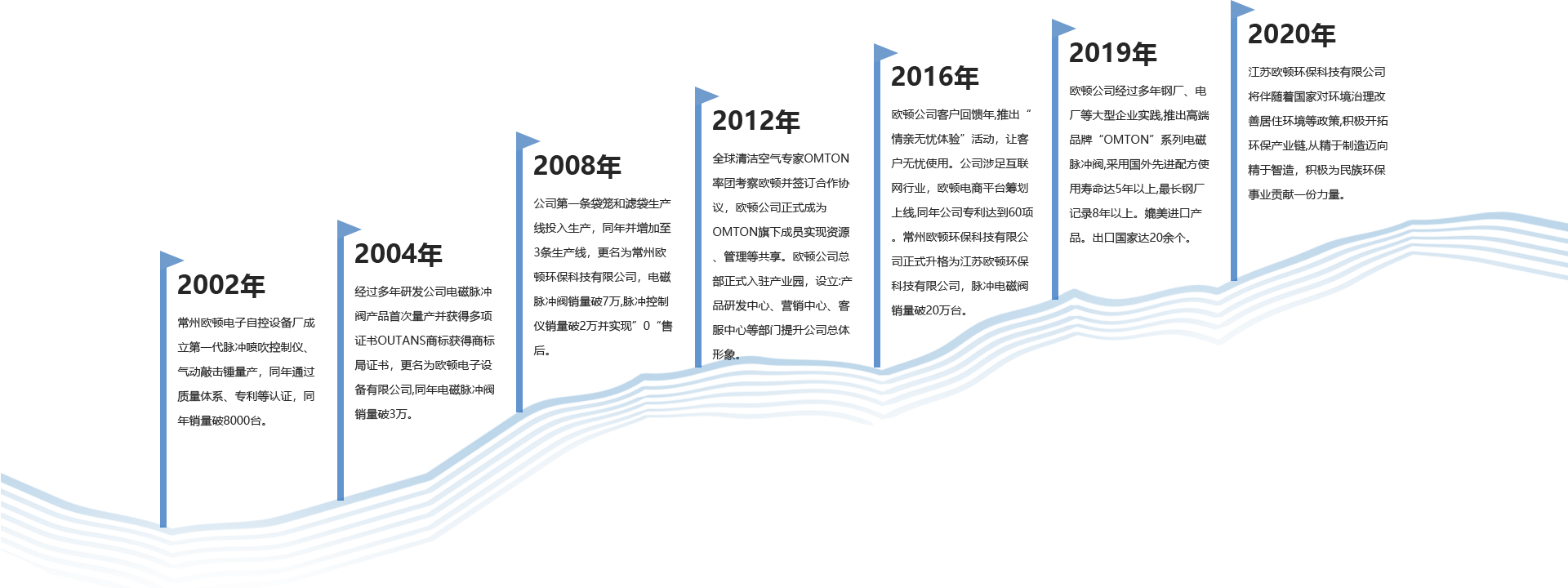 江蘇歐頓環(huán)??萍加邢薰臼且患覍I(yè)從事袋式除塵器配件研發(fā)、生產、銷售和環(huán)保技術相關的企業(yè)。公司通過國家相關產品認證企業(yè)、質量等認證企業(yè),公司擁有袋式除塵器技術研發(fā)中心、實驗中心、檢測中心等配套實施。我們以全球科技發(fā)展為導向,2014年通過與國外知名工業(yè)清潔空氣凈化專業(yè)企業(yè)進行合作,引進先進的空氣凈化技術和先進的產生、管理模式,投入大量資金對電磁脈沖閥膜片和除塵濾料產品進行研發(fā),并獲得顯著成果,使得歐頓產品在國內市場占有一席之地,產品質量媲美國外產品,使得歐頓公司在袋式除塵行業(yè)起到跨越性作用。我們的產品包括電磁脈沖閥、脈沖噴吹控制儀、除塵濾袋、除塵袋籠、除塵器專用氣缸、專用配件、電氣控制柜及過濾筒、氣動助流產品等。其袋式除塵產品廣泛應用于電力、冶金、建材、垃圾焚燒、化工等行業(yè)。在過去的數年里,公司的產品和服務得到了市場的認可及肯定,產品出口到數十個國家。